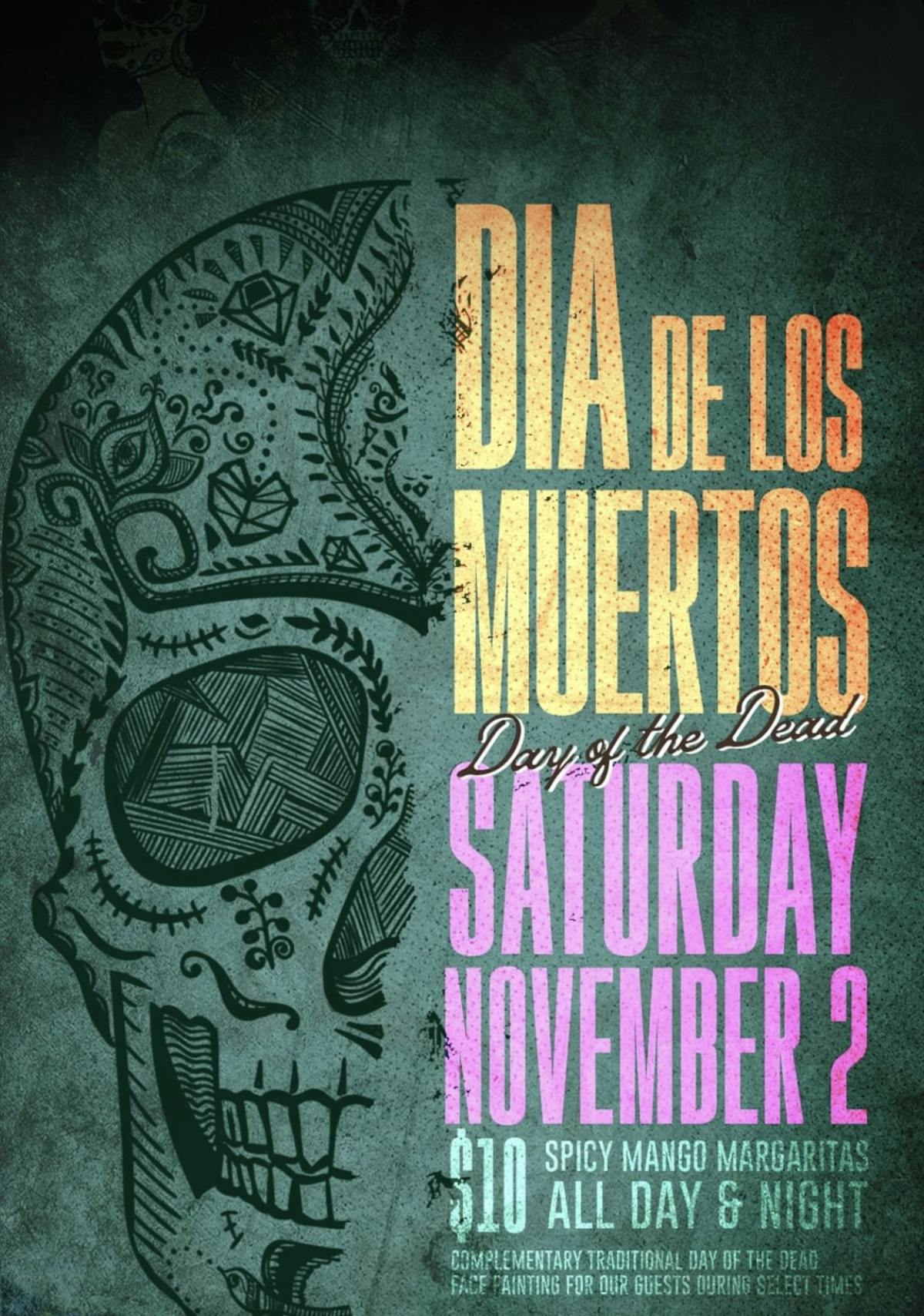 In addition to our drink specials, we will be providing complimentary face painting during select hours for our guests. Embrace the spirit of Día de los Muertos with beautiful sugar skull designs and colorful decorations that symbolize the celebration of life and death. Our talented face painters will be on hand to help you get into the festive spirit, making it a fun experience for families and friends alike.